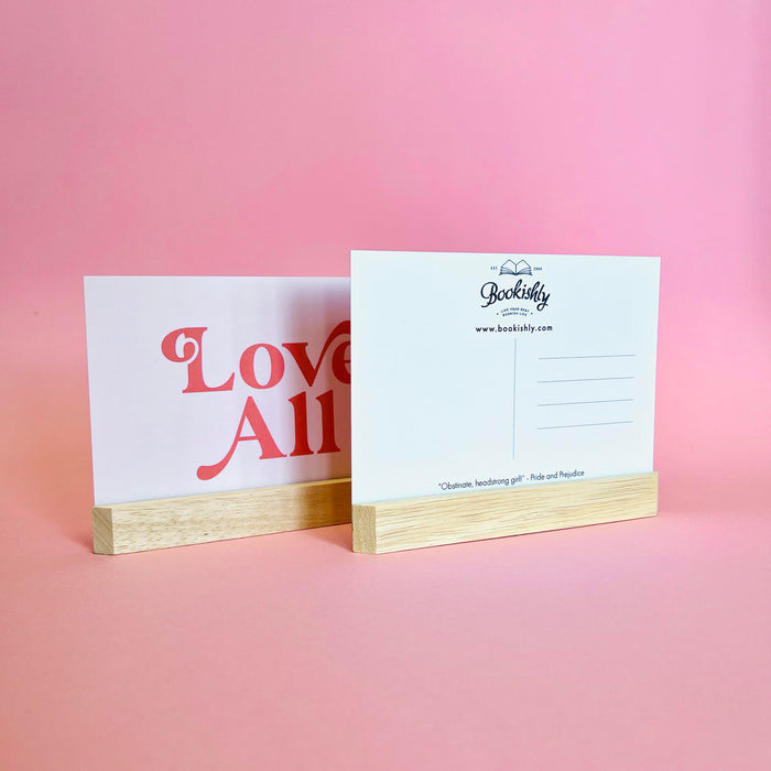 There’s also the option to add one of our postcard holders to your order. They’re made of soft obeche, a solid natural uncoated wood, and are magnetic - so you’re able to position your postcards in whichever way you think looks best. They have a tapered edge and measure 15cm (W) x 1.6cm (H) and 0.6cm (D). You can see examples in the product photographs.