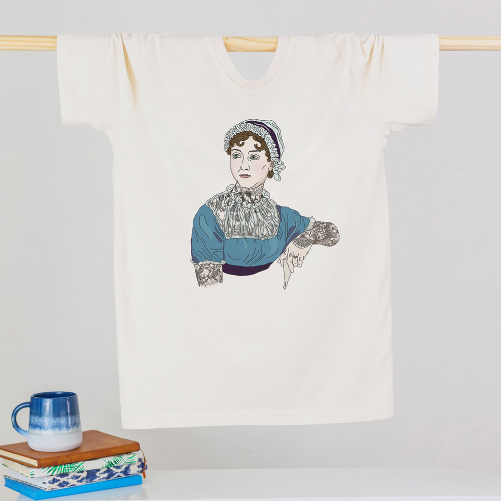 Our neutral bookish t shirts can be machine washed at thirty degrees and can also be tumble dried, though it’s better for them to dry naturally. Iron inside out to avoid print. One hundred percent ringspun semi-combed cotton. Our t shirts are unisex.